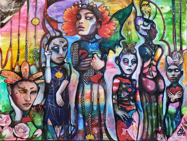 11" x 14" acrylic, watercolor, and paint pens on paper (2022)